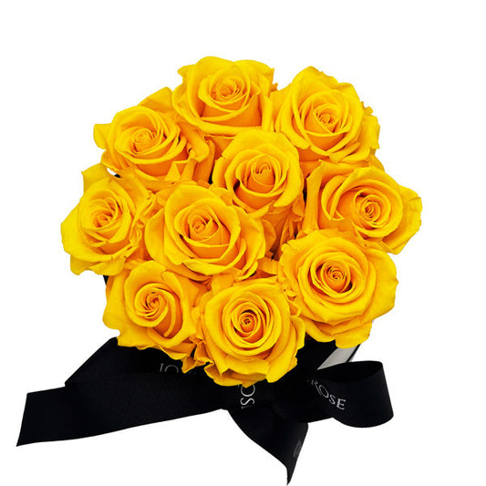 See how it works.Infinity Yellow Roses in a White Hat Box