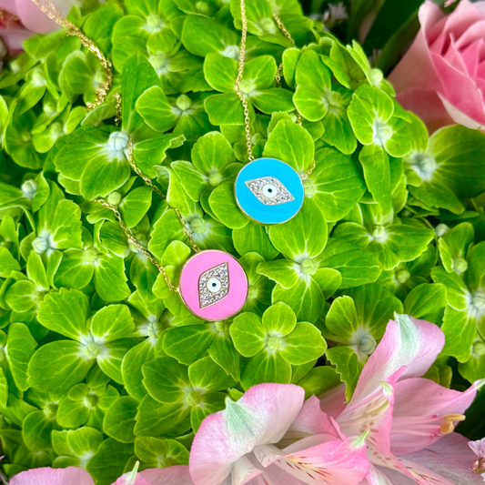 See how it works.Havana Enamel Evil Eye Necklace - Pink