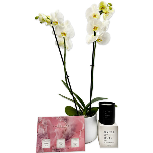 See how it works.Scented Candle + Chocolates + Sparkling Rosé