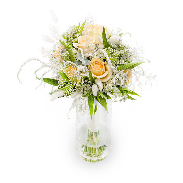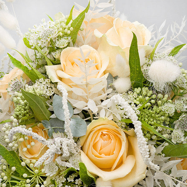 Add a touch of elegance and romance to your wedding day with our Peach and Cream Bridal Bouquet. This luxurious arrangement features sumptuous peach roses, delicately complemented by the ethereal beauty of astrantia and other dreamy greenery. Each element is thoughtfully selected and artfully arranged to create a bouquet that exudes sophistication and charm. Wrapped in a soft satin ribbon, the Peach and Cream Bridal Bouquet is the perfect choice for a bride seeking a timeless and enchanting floral accessory for her special day. We operate a seven day delivery service in London, with same day orders taken until 5 PM. You may also book our late night, or 24 hour ,service by choosing the appropriate delivery option. For rest of the UK, we operate a Tuesday to Saturday delivery service due to courier restrictions.