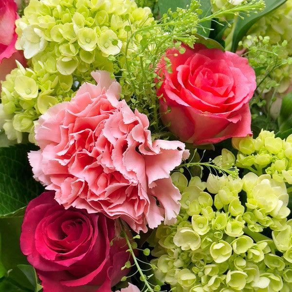 Introducing 'The Best' bouquet: There's always a meaningful occasion to express appreciation, and what could be more perfect than conveying it through a fresh flower delivery, available in London and nationwide! We've curated this enchanting bouquet in delightful shades of pink and green, designed to bring joy to that best person in your life. Expertly combining roses, carnations, and viburnum with artistic flair, our skilled florists have crafted each stem meticulously to create a truly unique bouquet that promises a lasting impression.